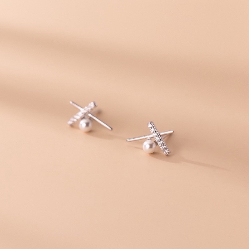 Bông tai bạc chữ X đính đá H.A.S bạc 925 cá tính - ST0182 free ship